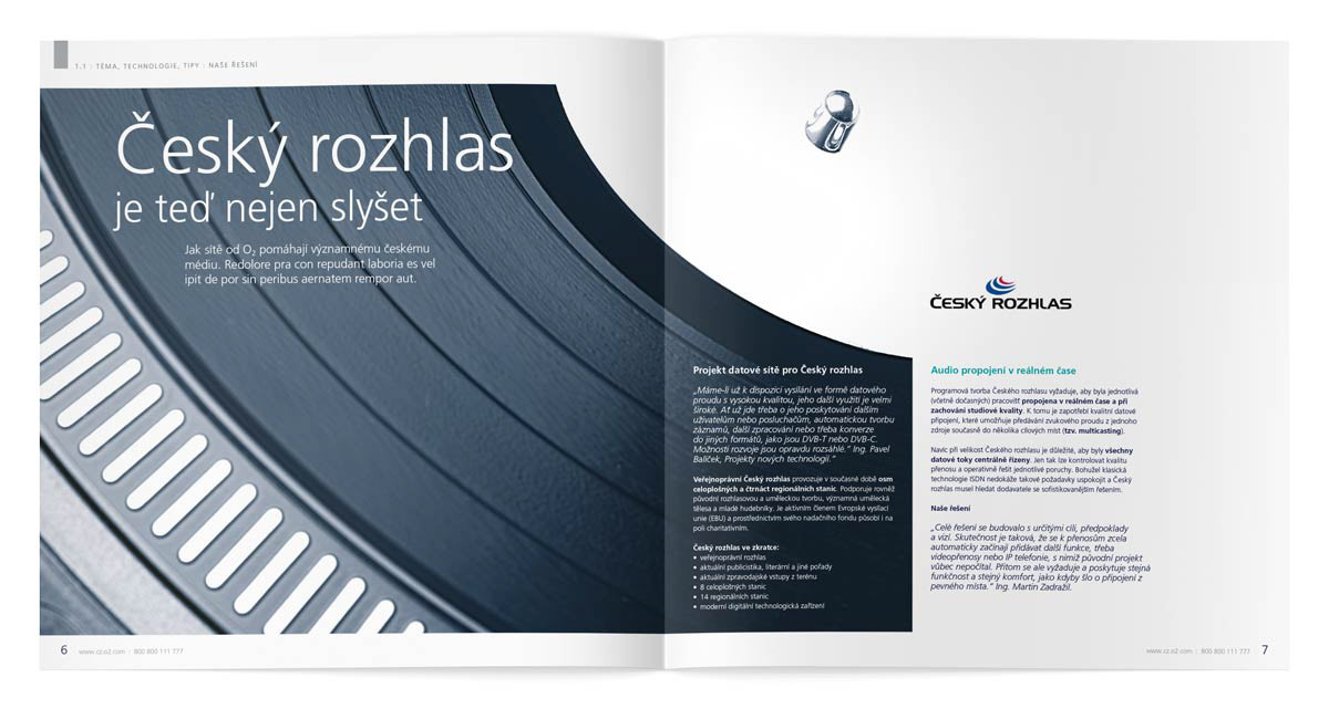 KLIENT: TELEFÓNICA O2 Grafický design firemního časopisu pro veřejnou správu. Bylo zde dosaženo maximální jednoduchosti, čistoty a elegance. Celkovou atmosféru časopisu dodávaly fotografie s velkými detaily.